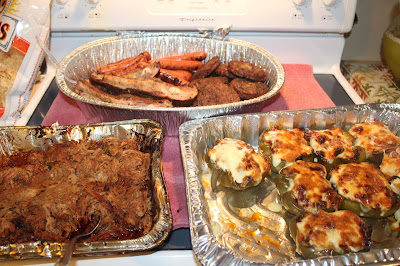 Shrimp, BBQ, hamburgers, stuffed peppers and lots of sides. Yum Yum!