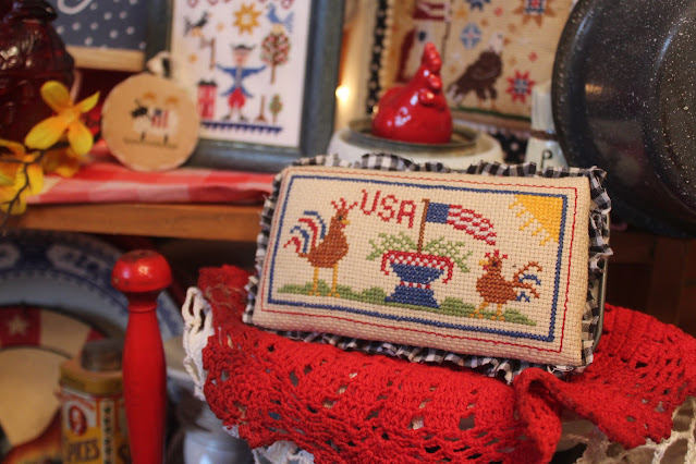 In the corner is one of the patriotic stitches that I worked on last year called Little Miss Liberty. I stitched it when my daughter was in Pennsylvania for the military.